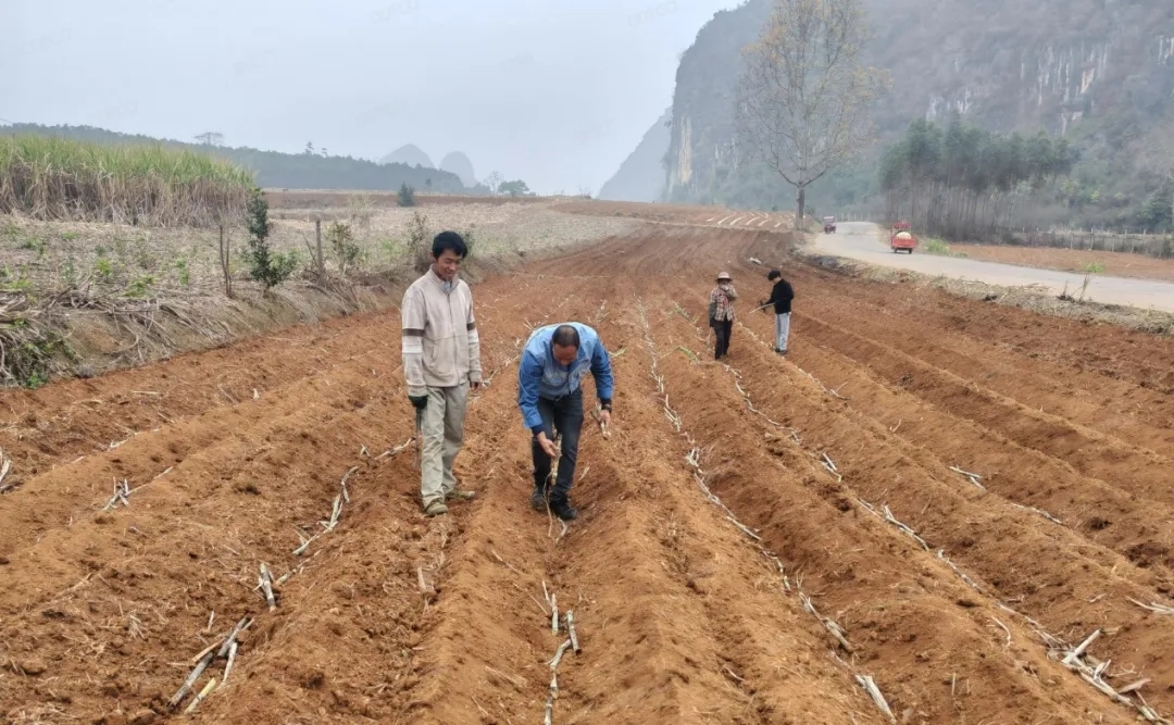 农时不等人,春日胜黄金。2024年的干旱天气导致土壤含水量下降,尽管春节后政府实施人工降雨为春耕备耕“解渴”,但降雨量仍然杯水车薪。连续干旱的土地及寒冷天气极大影响了甘蔗种苗的健康生长和成活,造成甘蔗的发芽和生长缓慢,并延缓了甘蔗种植进度,给2025年的甘蔗增产增收带来隐患。当下,正值春耕备耕的关键时期,中粮崇左糖业急蔗农之所急,多管齐下提高蔗农甘蔗种植积极性,全力推动蔗区春耕备耕工作稳步开展:一是48小时兑现甘蔗款,有效缓解蔗农种植资金短缺问题;二是大力推广机械化种植,实现开沟、施肥、播种、覆土、盖膜五道工序全过程机械化,提高种植效率;三是推广覆盖地膜保水保肥,提高出苗效率,为盖膜种植的甘蔗补贴50元/亩;三是推广脱毒种苗、健康种苗等良种良法,提高种苗成活率;四是对采取水肥一体化、滴管(喷灌)抗旱种植的甘蔗补贴200元/亩,提高蔗农积极性;五是组织技术人员深入田间地头,为蔗农提供全方位甘蔗种植技术指导。目前,中粮崇左糖业蔗区已完成春耕面积7万亩,真正做到春耕与时俱进、应种尽种,为2025年甘蔗保持良好生长和高产奠定了坚实的基础。